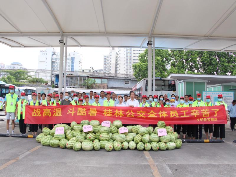 “大家辛苦了,这是我们文明乘客的一点心意。”8月5日,近20位文明乘客自发购买了一批新鲜西瓜送到公交驾驶员们手中,给坚守在一线的驾驶员们送上了丝丝清凉。当天,文明乘客们来到桂林交通控股公交集团铁...