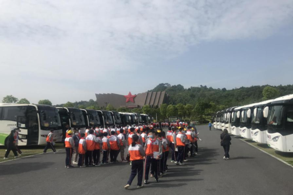 习近平总书记视察桂林一周年之际,近日全州迎来了红色研学实践活动新高潮。为配合广大中小学校、企事业单位参观红色教育基地,桂林交控轨道集团灵渠投资公司全力调派绿色新能源大巴参加运送工作,仅5月17...