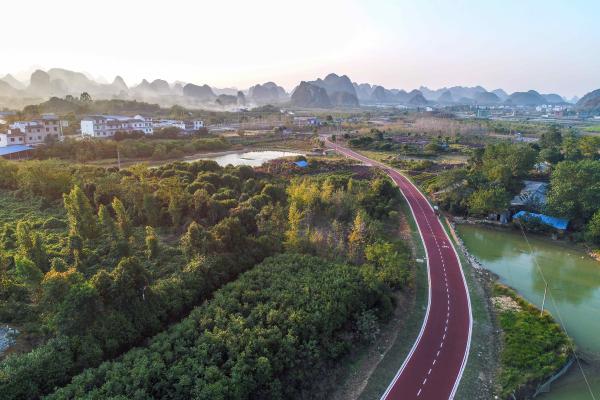 据了解,漓西绿道是由桂林交通控股集团投资建设的休闲慢行绿道,漓西绿道全长50.8公里,总投资4.4亿元,计划全线设15个驿站,目前沿线投入使用有3个驿站,为过往游客骑行爱好者提供休憩的场所,其中功能最齐全的驿站是杨堤驿站,可提供单车租赁、住宿服务、餐饮、旅游咨询等多种服务。漓西绿道通过借助互联网、大数据等现代技术,拓展义务植树新途径,创新开展形式多样的义务植树活动,形成线上线下融合发展,实现了义务植树全年化、常态化和多样化。