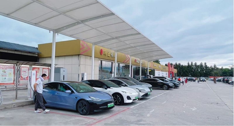 ▲国庆期间高速公路充电站现场