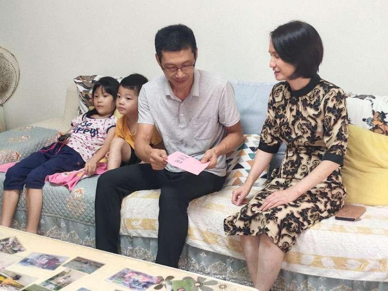 ▲吕小洁慰问党员唐杰。黄楚琪/摄