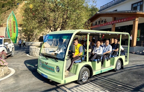 在梧州市苍梧县黑石六堡茶源博园,茶文化活动现场场地大、活动地点多,阳朔山水公司新能源接驳车一亮相,就受到了游客们的欢迎。采茶、炒茶、品茶、逛茶园……新能源观光车带领游客们打卡各个活动场地,在茶园内尽情欣赏自然风光,“沉浸式”感受茶文化的无穷韵味。