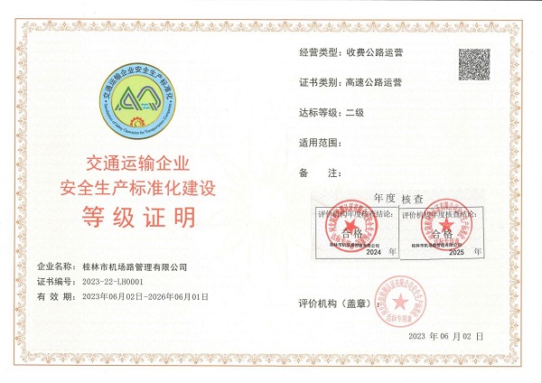 近日,yl23455永利集团官网集团机场路公司传来喜讯,顺利通过自治区高速公路管理局组织的高速公路运营企业安全生产标准化二级达标复评审核。这一重要成果,标志着公司在安全生产管理领域再攀高峰,迈出了坚实且意义深远的一步。
