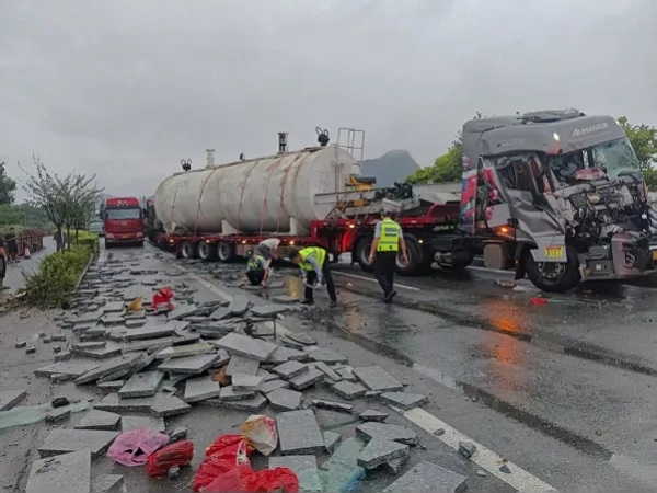 当天5时45分,阳桂公路公司道路养护中心接到事故报警后,立即向公司领导汇报并快速组织响应。道路养护、安保等多岗位人员迅速集结,携带安全警示设施赶赴现场。抢险队伍第一时间对事故区域实施安全布控,设置警示标志和隔离锥桶,指挥车辆绕行,有效防范二次事故的发生。
