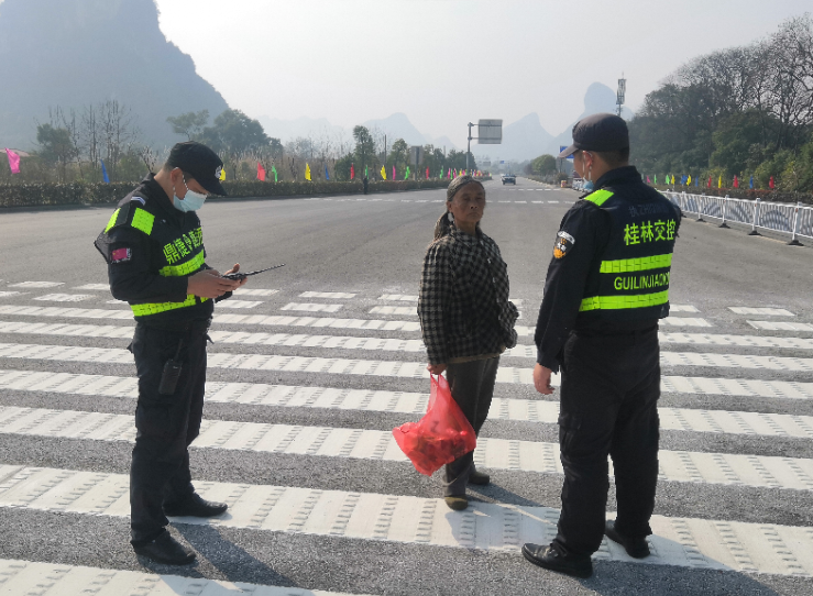 2月26日午间,一名衣着单薄、精神疲惫的流浪女子冒雨步行至雁山收费站车道。现场值班安保人员发现后,立即上前询问帮助。在与该女子沟通后得知,她已有一天未进食,工作人员一边给她测量体温、安排佩戴口罩,一边给她提供了泡面、水果等食物。经深入了解,该女子为辽宁省抚顺市人,父母双亡无兄弟姐妹,因年前来桂务工途中遗失了手机、身份证等物品,流浪至今。
