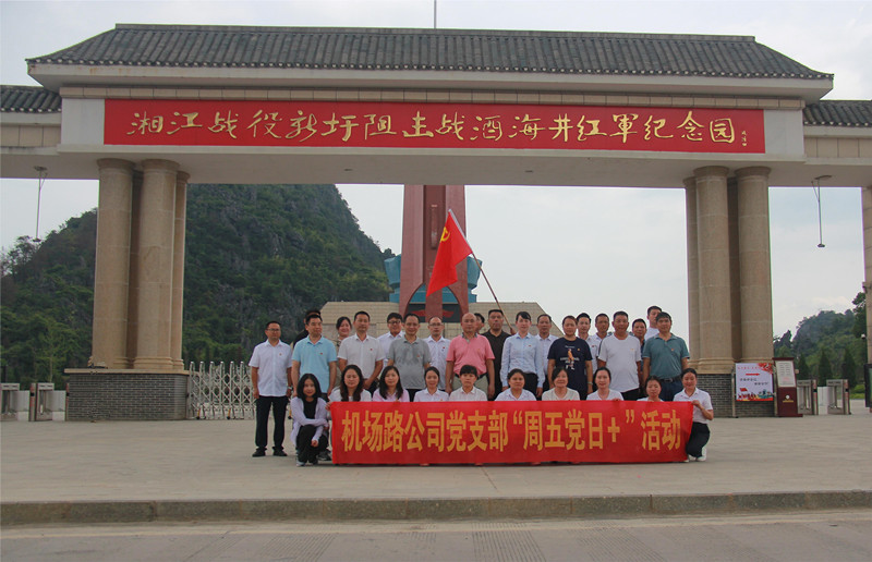 为深入学习贯彻党的二十大精神,扎实推进习近平新时代中国特色社会主义思想主题教育走深走实,2023年7月14日,中共桂林市机场路管理有限公司支部委员会、中共桂林市阳桂公路管理有限公司支部委员会(以下简称机场路公司支部委员会、阳桂公司支部委员会)组织党员同志们赴灌阳湘江战役新圩阻击战酒海井红军纪念园开展主题教育现场教育学习活动,接受党史和革命传统教育。