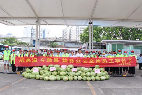 当天,文明乘客们来到桂林交通控股公交集团铁西车场,看望、慰问公交一线驾驶员,感谢公交员工的辛勤付出。蔡就文是文明乘客种的一员,慰问中他说,作为桂林市民,给驾驶员送来清凉慰问品是尽自己的绵薄之力,希望公交员工做好防暑降温工作,为市民乘客提供安全、便捷、舒适的出行服务。
