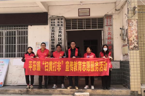 3月2日,弘润党支部与平乐镇上关社区志愿者们来到平乐一小开展“扫黄打非”学雷锋志愿活动。