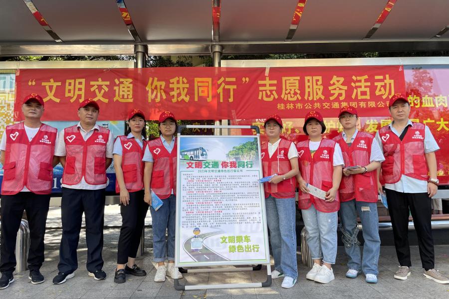 为积极营造绿色、健康、环保、文明的交通出行环境,7月28日,桂林市公共交通集团有限公司开展“文明交通 你我同行”志愿服务活动,向市民、乘客发出文明交通绿色出行倡议。