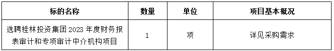 1.项目名称:选聘yl23455永利集团官网集团2023年度财务报表审计和专项审计中介机构项目