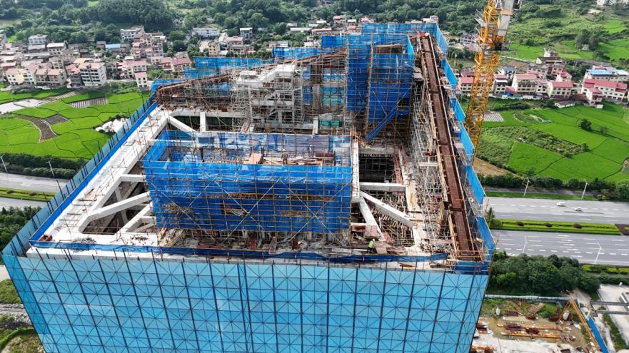 桂林市旅游交通换乘中心是自治区重点项目,作为临桂新区城市基础配套设施,建设进展一直备受关注。目前项目所有楼栋的主体结构以及屋面以上附属结构均已施工完成,相关机电配套及幕墙预埋件也已安装,建设工人们正在进行换乘中心顶楼结构施工。