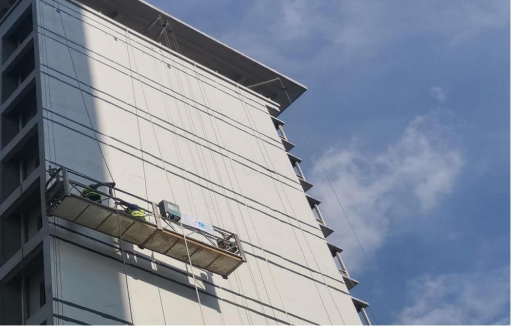 ▲鼎越城17#楼外立面吊篮喷涂真石漆