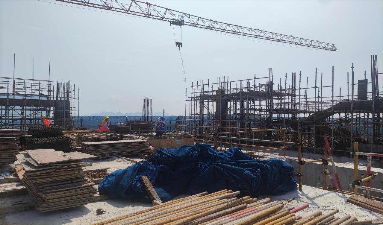 在桂林市交控置业•鼎越城项目施工现场,建设者们正紧锣密鼓地进行电力设备吊装、楼外立面喷涂、楼内墙砌筑。自高温天气以来,公司在保证安全和质量的前提下,采取错时施工和防暑降温措施,加强安全巡查,确保施工安全与建设进度。