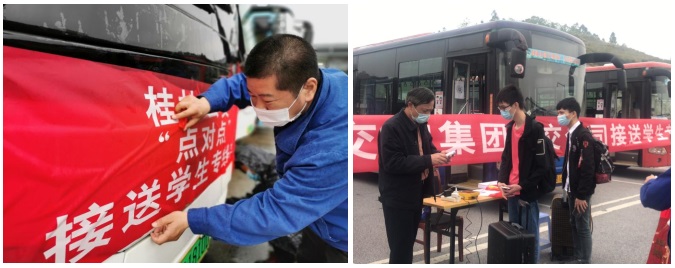 “最初那年是秋季开学的时候,我们发现桂林站、桂林北站到雁山那边的学生特别多,而且学生们行李多,出行不太方便。公司尝试着在桂林站调配了4辆公交车作为专线车,送学生返校。”驾驶员胡师傅回忆说。