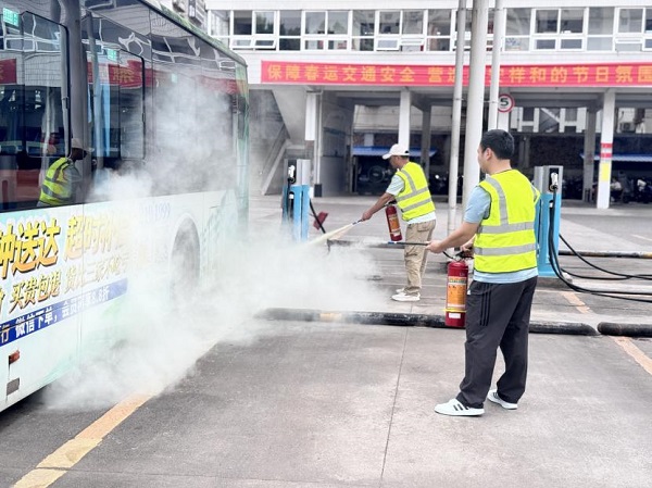 近日,桂林公交铁西场站警报骤响,一辆正在充电的纯电动公交车突发“火情”,现场浓烟四起。这是yl23455永利集团官网集团公交公司部门开展的新能源车辆火灾事故应急处置演练现场,通过全要素实战模拟锤炼应急救援能力。