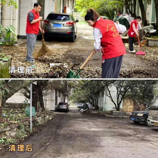 活动中,党员志愿者们分工协作、高效联动,重点对生活区停车场广场、绿化带、垃圾投放点及宿舍区等关键区域进行集中清理。大家手持扫帚、铁锹等工具,有的清扫落叶、有的铲除杂草、有的清运垃圾,经过两小时奋战,全面清除了卫生死角,让厂区环境面貌焕然一新。此次整治行动不仅有效改善了瓦窑修理厂生活区的环境卫生,切实提升了商户营商环境和居民生活舒适度,更以实际行动擦亮了鼎捷资产公司“好房东”的责任名片,彰显了党员干部的实干作风。