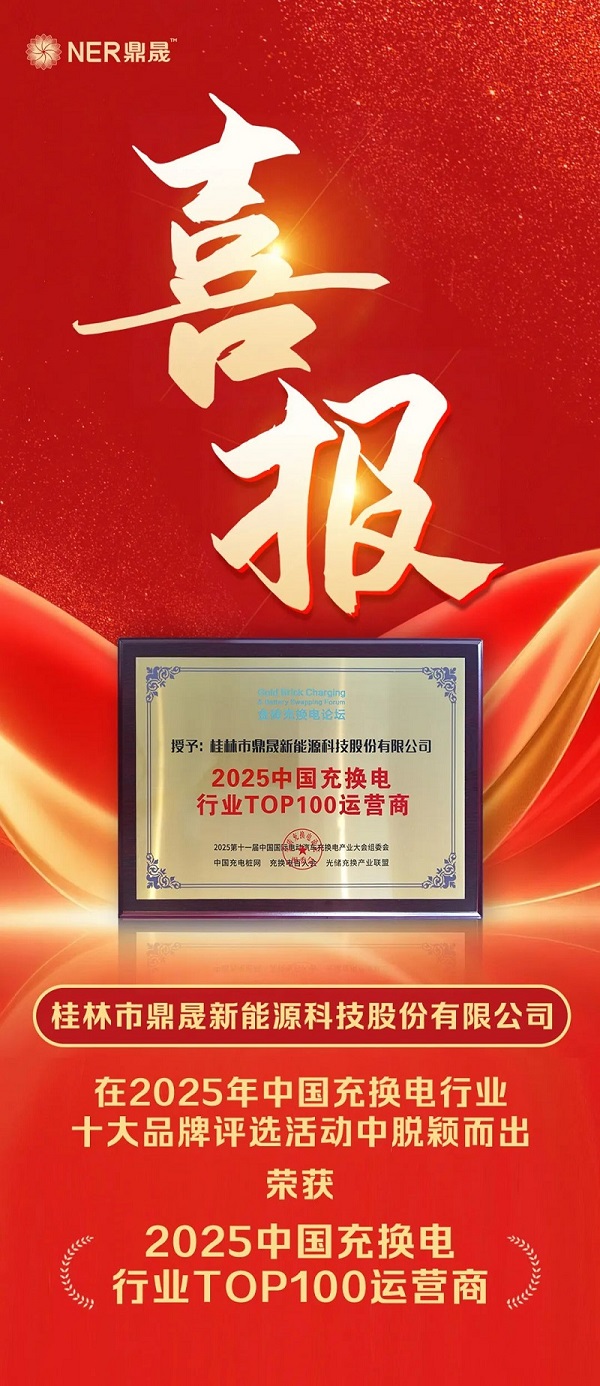 喜报 | yl23455永利集团官网集团鼎晟新能源公司荣获2025中国充换电行业TOP100运营商